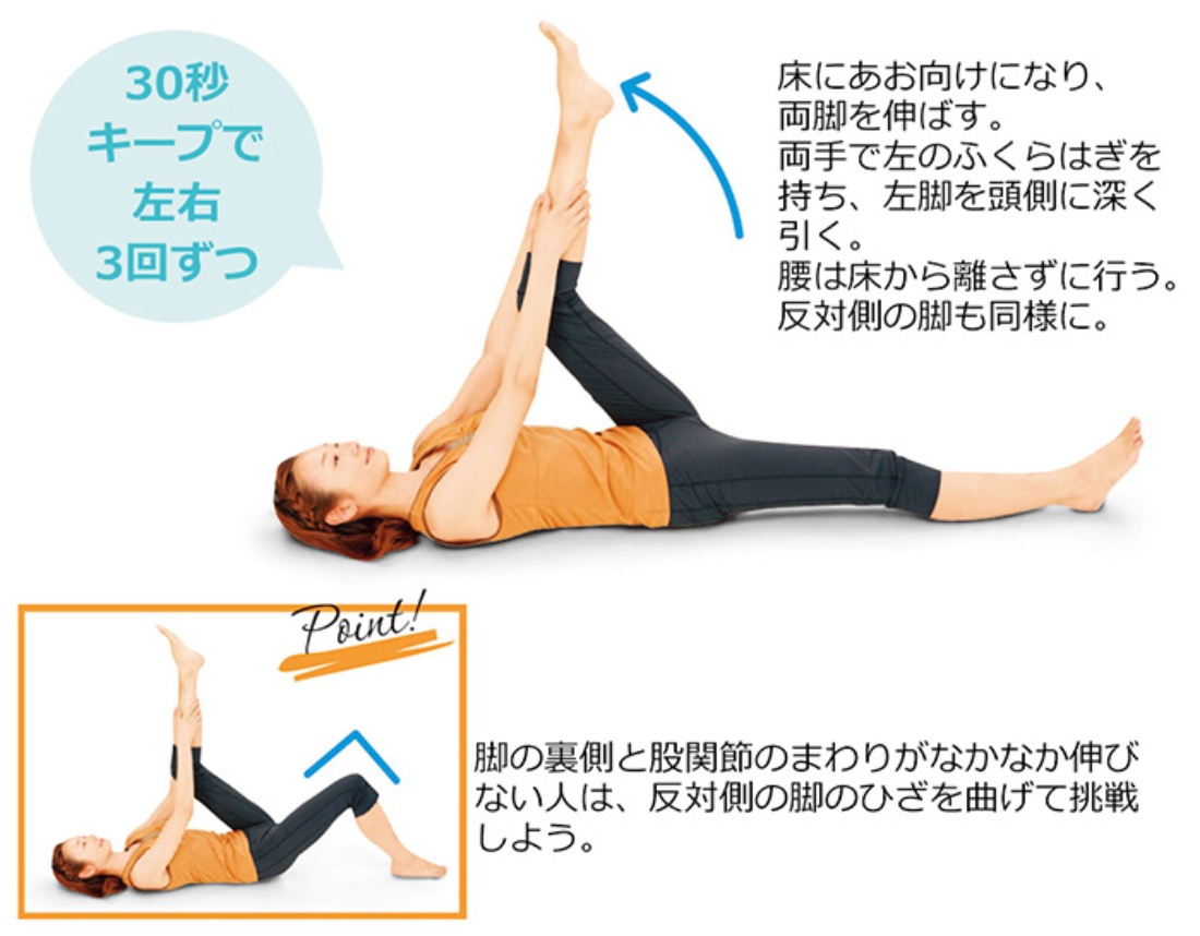 仰向け時に足が真っ直ぐ伸びないと様々な部分に負担がかかってしまいます。
